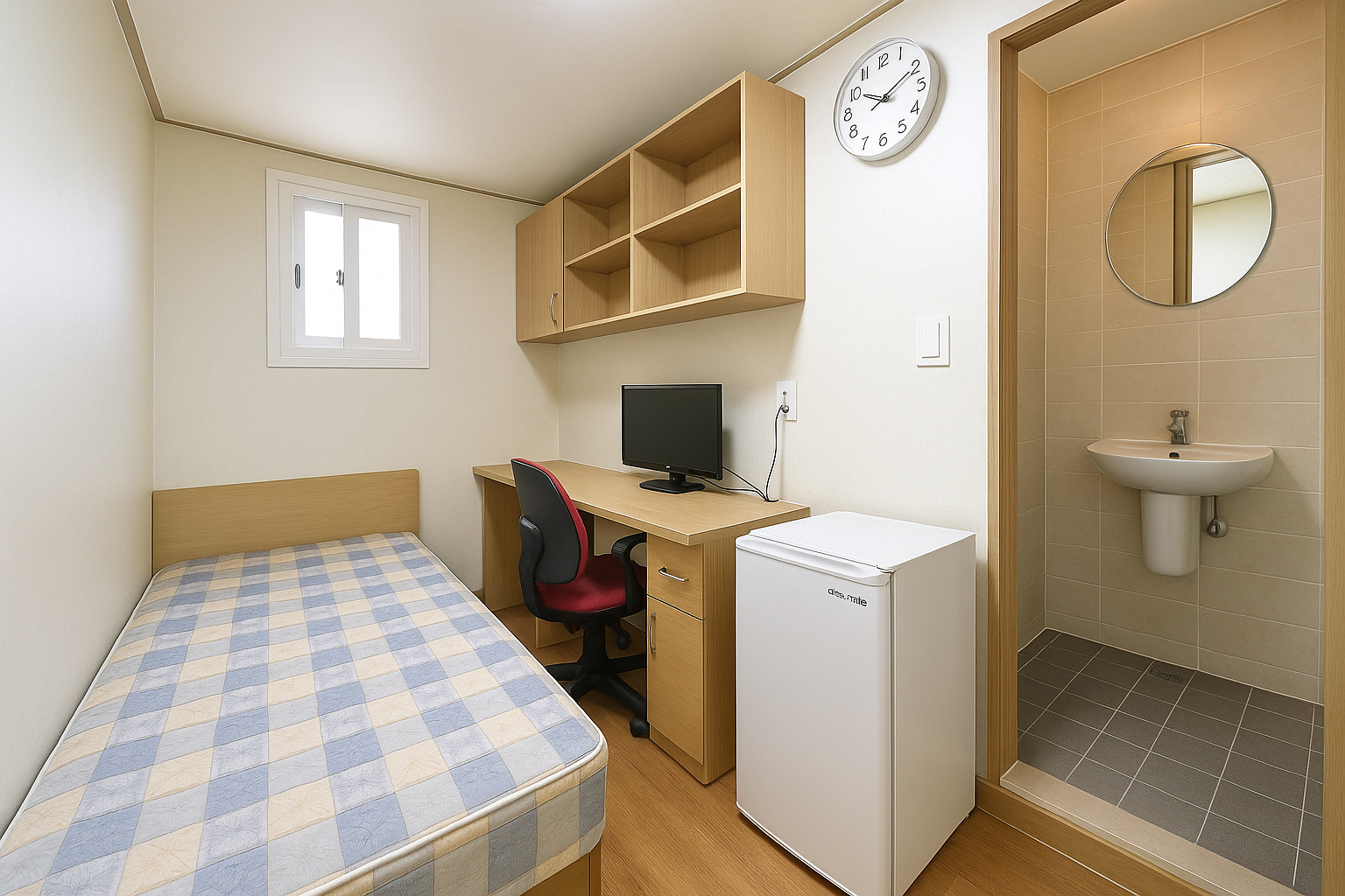 - 독립 공간 구성: 방 내부에 화장실, 샤워기, 싱크대 등 기본적인 생활시설이 포함되어 있습니다.